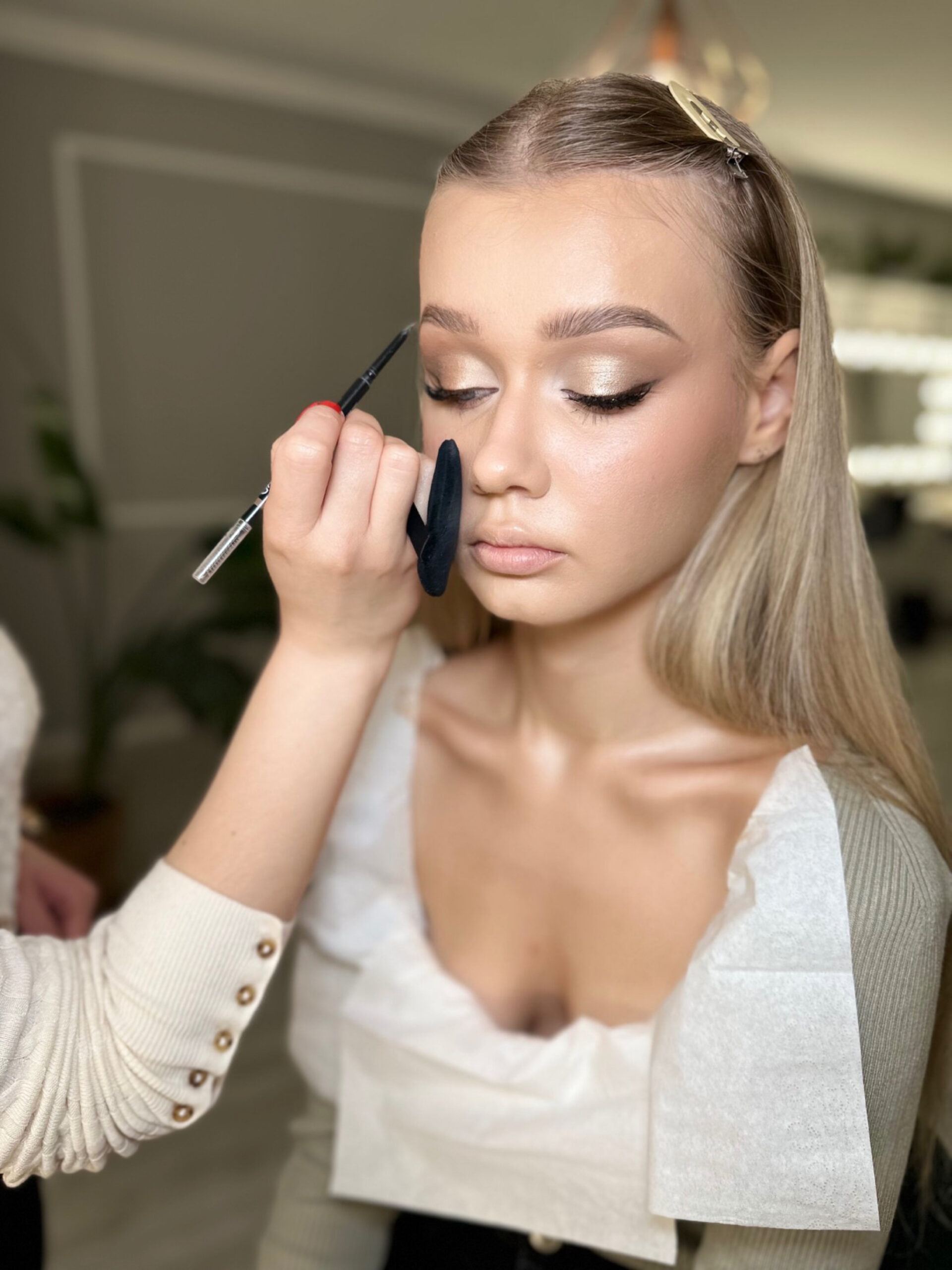 • kursantka wybiera makijaż, który ma zostać opracowany na warsztatach m.in. dzienny, ślubny, klasyczny, foxy eyes, wieczorowy, sylwestrowy, glow, opadająca powieka, skóra problematyczna